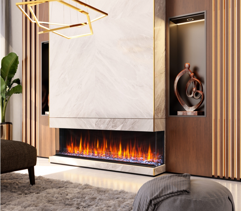 Create an alluring atmosphere from any angle with the SimpliFire® Scion Trinity electric fireplace. It adds stunning ambiance in three-sided, corner or single-sided styles where you can finish your wall in a sleek look.